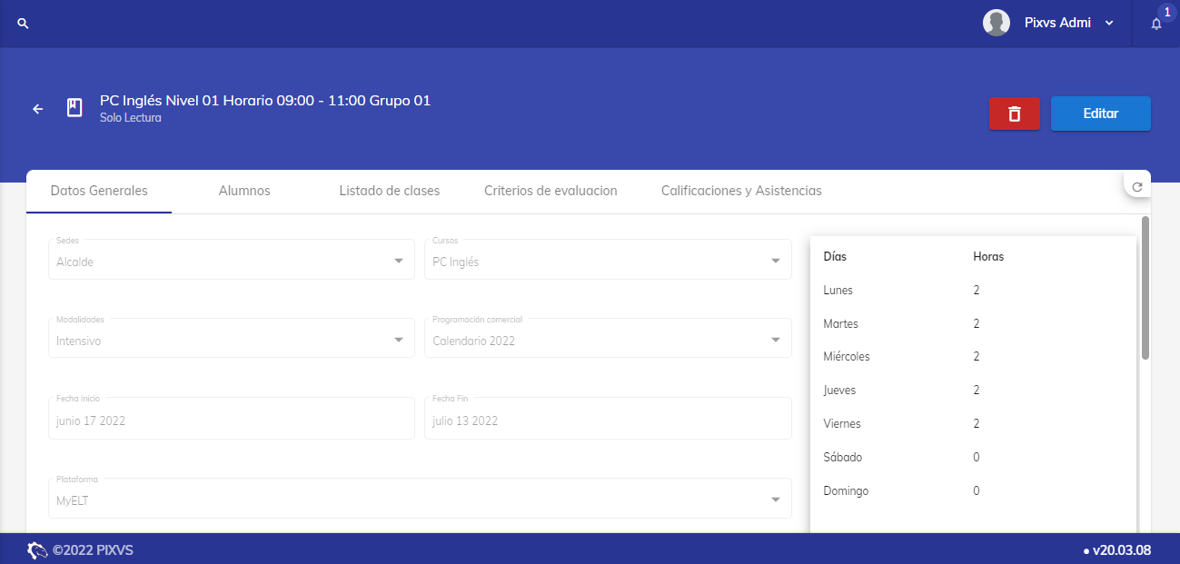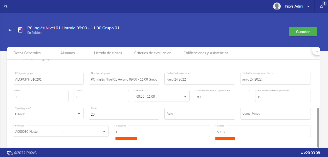 2.- Una vez encontrado el grupo al cual deseas asignarle el profesor entonces simplemente debes hacer clic sobre el renglón correspondiente. Una vez dentro del detalle del grupo podrás ver la siguiente información del grupo y hacer clic en "editar"