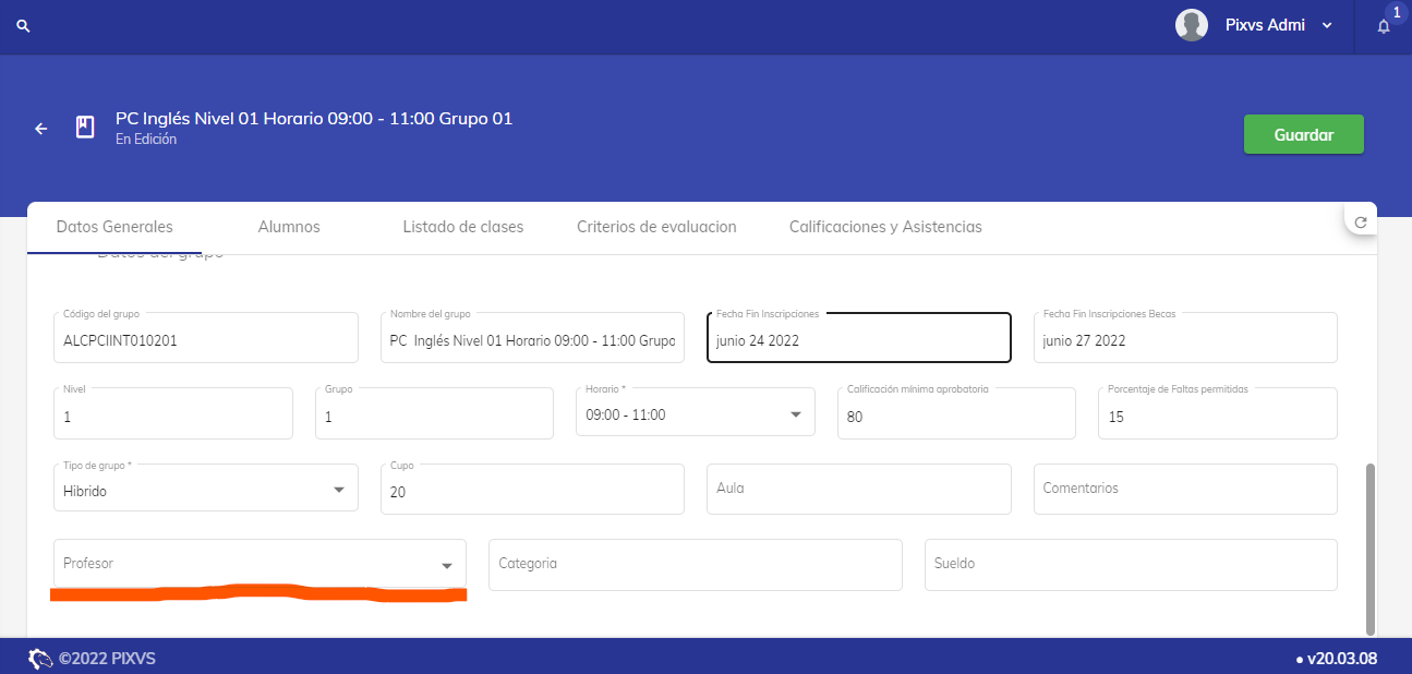 Para asignar un profesor a un grupo se debe de realizar lo siguiente: